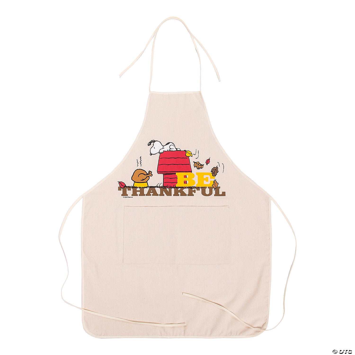 This cute, Peanuts apron will add another reason to be thankful this Thanksgiving! Featuring an adorable picture of Snoopy and the words “Be Thankful," this handy apron makes a wonderful gift for the holiday season and comes with a stitched front pocket to store utensils or small items while cooking. Lightweight 100% cotton canvas. Measures 26" x 34 1/4" with 24" and 33" ties. NEW