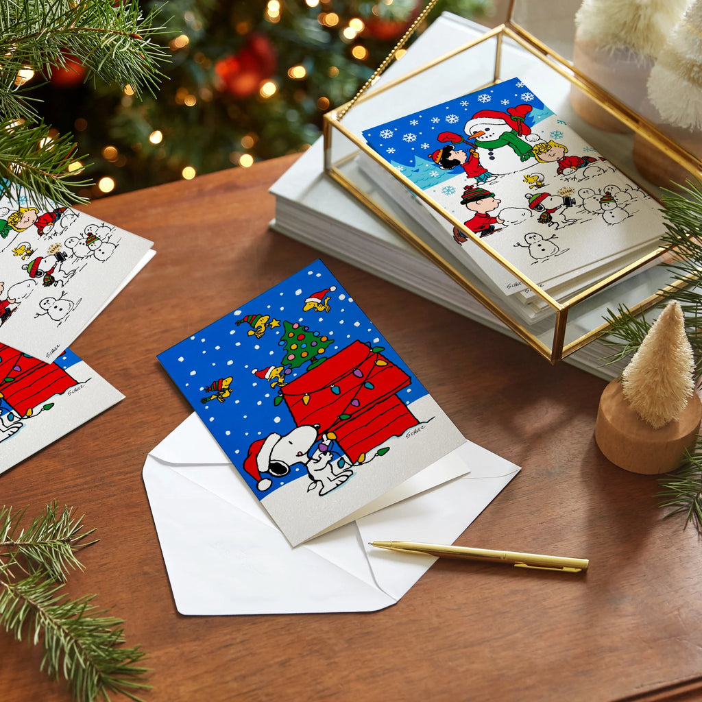 Warm hearts at the holidays with these Peanuts Christmas cards by Hallmark featuring designs of Snoopy and Woodstock decorating for the season and the Peanuts gang having fun in the snow. Whether you’re sending holiday wishes to friends and family or stocking up on cards to have on hand for any occasion, Hallmark offers boxed cards and card packs in single designs and assortments to fit all your needs. Hallmark has been your family-owned creator of greeting cards, Christmas ornaments, gifts and wrapping paper for more than 100 years. We take deep pride in helping individuals connect in just the right way.