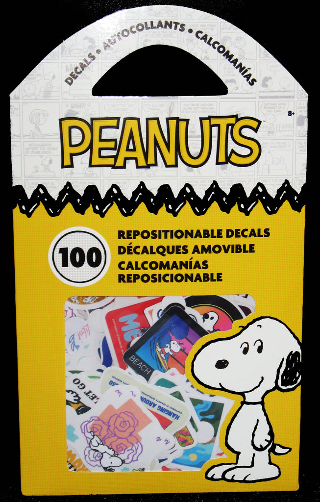 Unleash your creativity with the Decal Variety Pack, featuring 100 unique, high-quality repositionable Peanuts decals. These versatile stickers come in an array of eye-catching designs, shapes, and sizes, perfect for personalizing your belongings. Effortlessly apply and remove these durable decals without leaving residue, ideal for decorating skateboards, laptops, phones, water bottles, lockers, notebooks and more. Express your individuality and stay on-trend with these fun, stylish adhesives that cling to any smooth surface. The convenient travel-size package comes with a carrying handle, ensuring easy storage and portability, allowing you to customize your world wherever you go. Transform your everyday items into personalized masterpieces with the Decal Variety Pack – the ultimate sticker accessory for showcasing your unique style. Package measures 6" x 10" - NEW