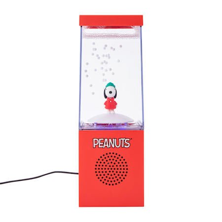 The Snoopy Bluetooth Water Speaker With Moving Snow and LED Multi-Color Changing Effects will light up every room. A portable speaker system featuring Bluetooth connectivity and USB audio input. With a fun Snoopy design, this speaker is compatible with Apple and Android devices. The multi-color LED lights and illuminated features add a fun and festive touch to your audio experience. Powered by a USB-C cable (included), this speaker is perfect for on-the-go use and can easily be connected to any other device with a USB-C port for high-quality sound.