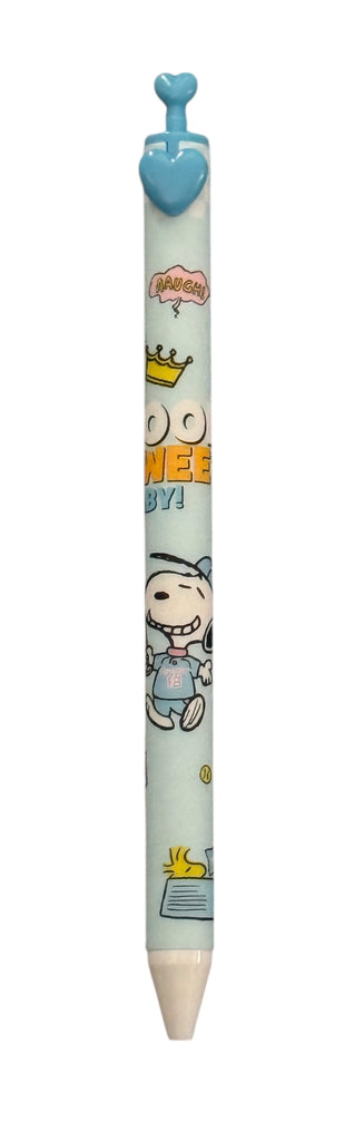 Peanuts Fine Point Retractable Ballpoint Pen. Remove tip cover before using; blue or black ink/not designated on package. Measures 5.75" long; 0.5mm. NEW