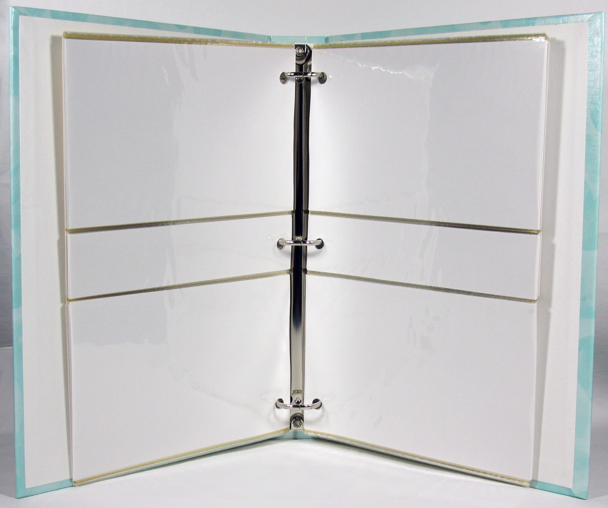 Hardback Baby Photo Album 3-Ring Spiral Binding Refill Pages Only (*Album NOT included). Pages measure 6 5/8" x 10 1/8". Includes 11 acetate pages; guaranteed photo safe. Each double-sided page holds four 4" x 6" or 3.5" x 5" photos for a total of 44 photos. Lightly Used Pages