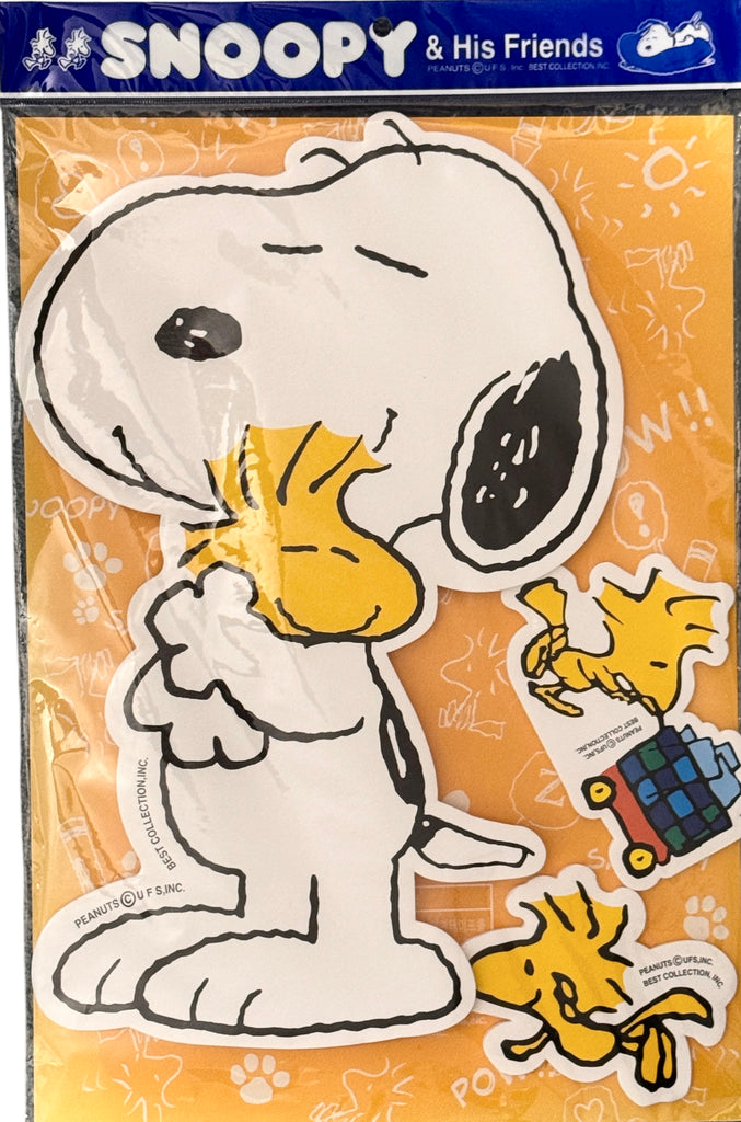 Peanuts Large Self-Adhesive Laminated Foam Wall Decor. Includes 10" x 16" Snoopy and two 6" x 4.5" Woodstocks. Self-adhesive tabs included. Package measures 13" x 17.5". NEW