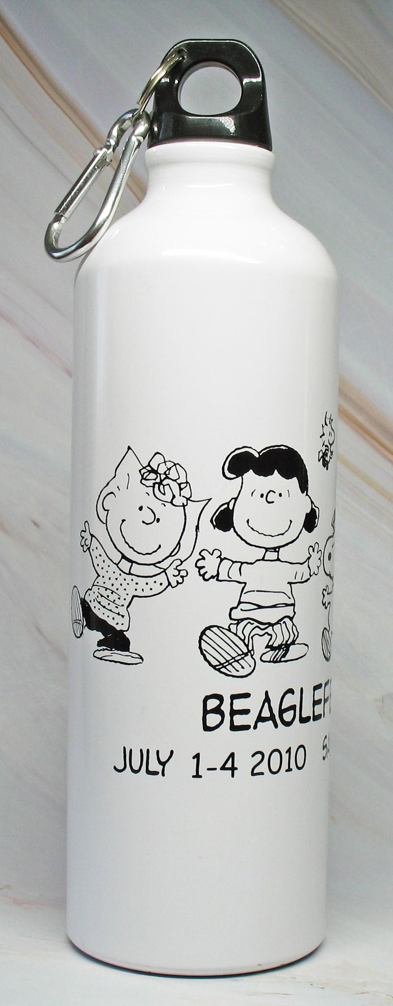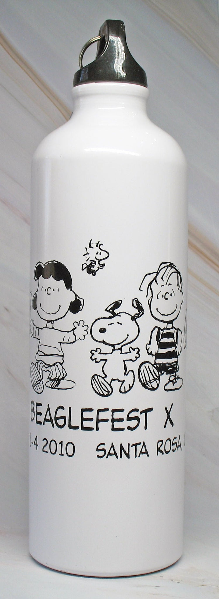 2010 Beaglefest X 27 oz. Stainless Steel Water Bottle With Carabiner for hanging on belt loop, purse, backpack, etc. - 9 1/2" high x 2 7/8 diameter - NEW