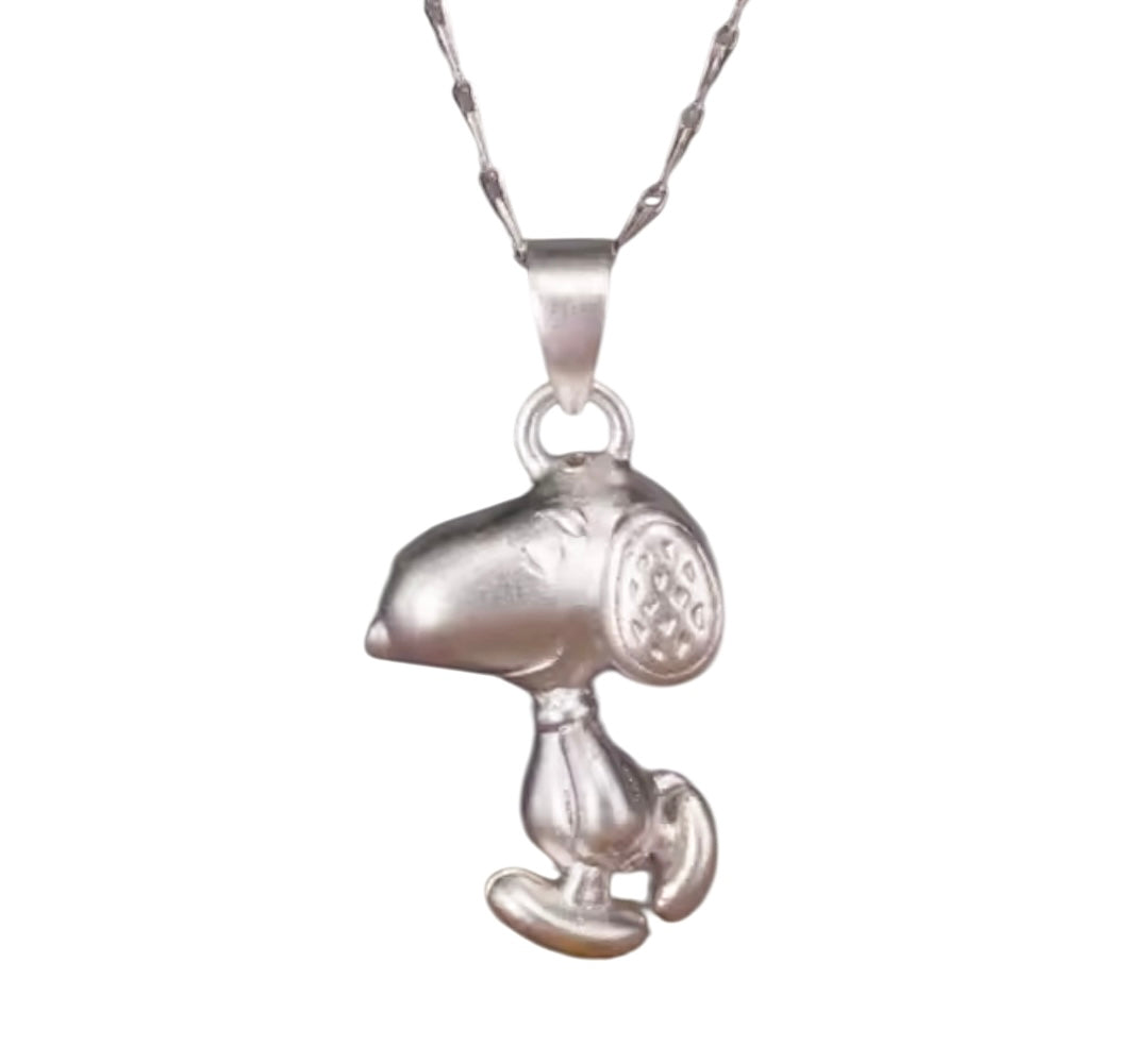 Snoopy 3-D (full body) Sterling Silver Pendant and Bail. Made of .999 Fine Silver. Pendant measures 1/2" wide x 5/8" high; 1/8" long bail. Chain not included. NEW