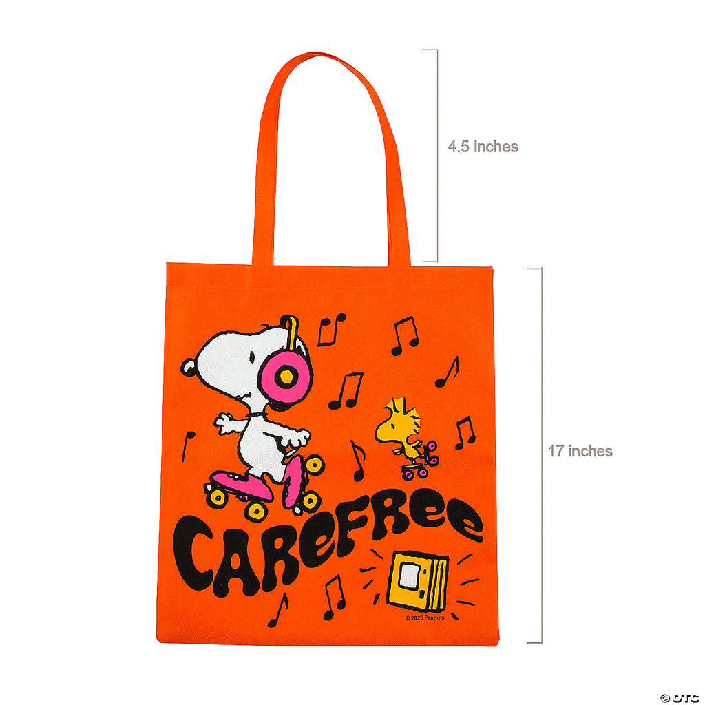 Carry the fun wherever you go with these large 5" x 17" Peanuts® Nonwoven Snoopy Tote Bags! Featuring delightful designs of Snoopy and friends, these durable, reusable bags are perfect for shopping, school, or gifting. Lightweight and spacious, they bring a touch of whimsy and practicality to any outing while celebrating the beloved Peanuts® characters.