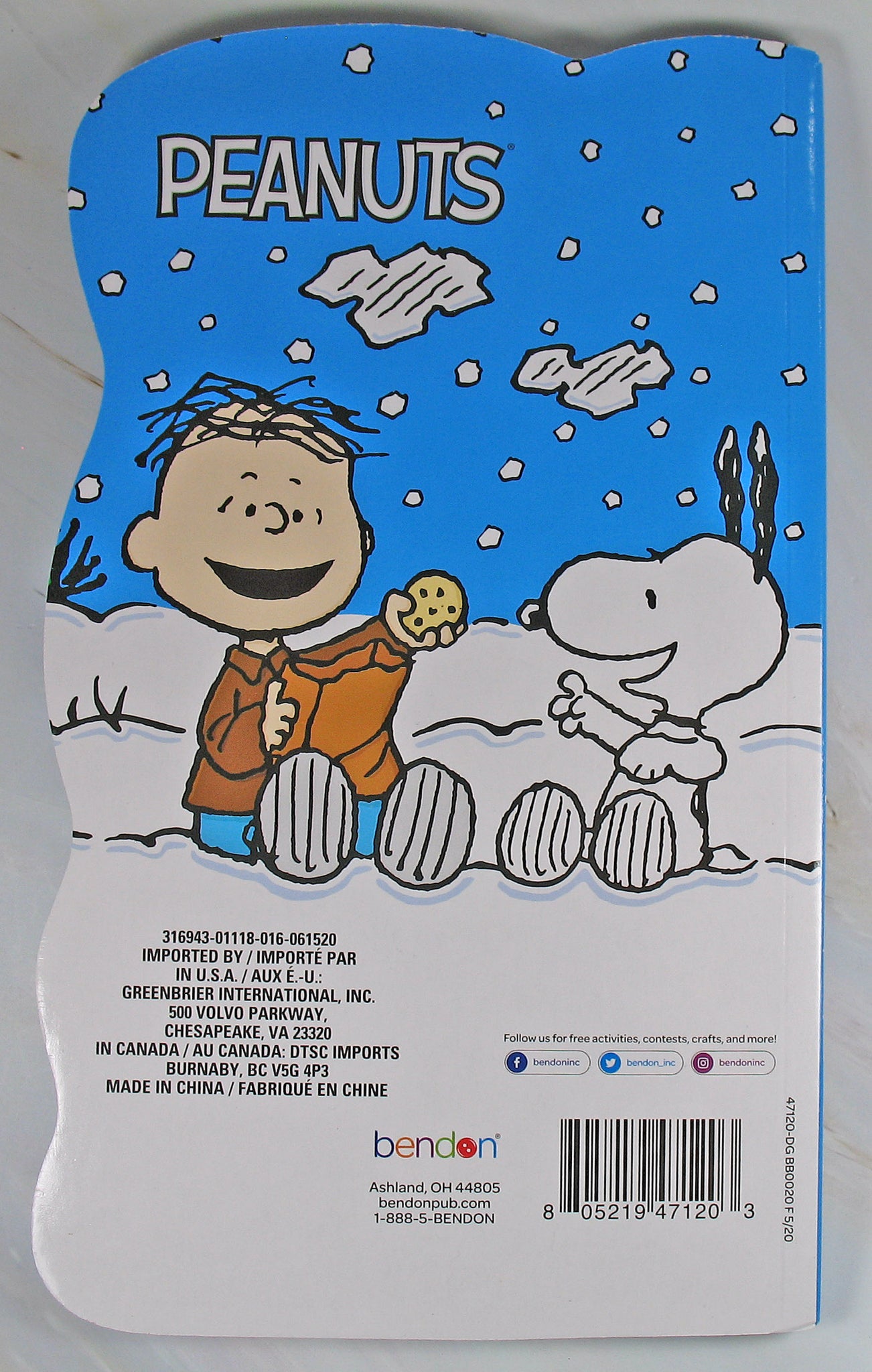 Peanuts colorful die-cut board book (6 double-faced pages) - 5" x 8.5" - NEW